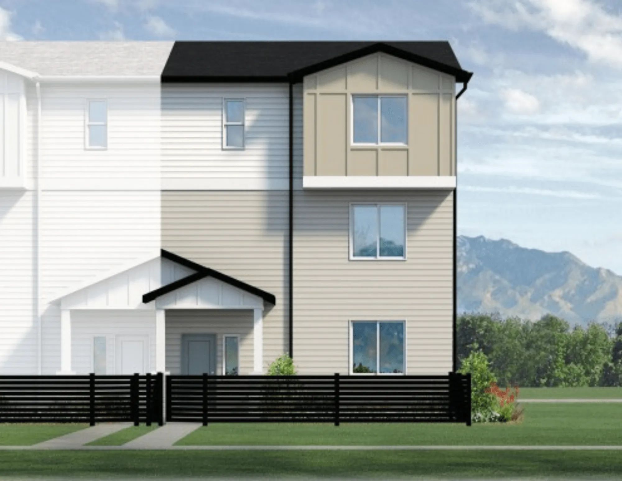 This end unit floor plan features a welcoming entryway on the first level and a two-car garage with extra storage. The second level offers a modern kitchen, great room, half bath and convenient laundry room, while the third level showcases an owner’s suite with a private bath, two additional bedrooms, and a hall bathroom.